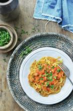 Web Een snelle courgetti met pesto op maandag en een uitgebreide courgetti met zeevruchten in het weekend.